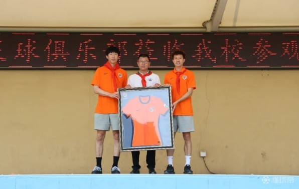 首都师范大学青岛城阳附属学校校长裴建军对俱乐部一行表示热烈欢迎,并对海牛俱乐部校园行助力校园足球发展表示感谢。随后,俱乐部为学校送上球队比赛服留做纪念,校方也回赠了相关礼物。