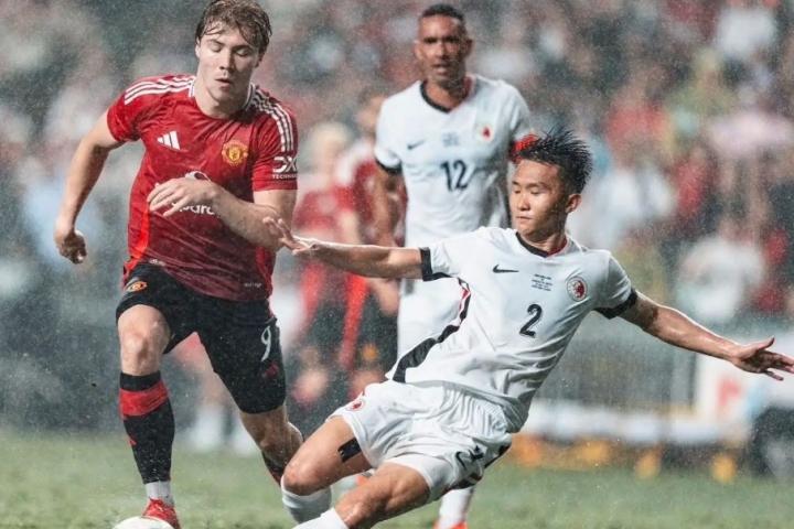 5月30日晚,在香港大球场进行的一场友谊赛里,中国香港队1-3不敌英超曼联队。港脚徐宏杰在社交媒体里晒照并写道:“很荣幸有机会可以跟曼联踢比赛🤩很棒的回忆🧩”