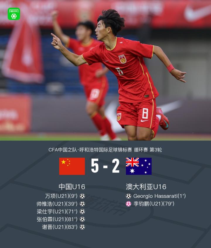 U16国少多点开花5-2澳大利亚U16夺冠!谢晋传射,万项、帅惟浩建功