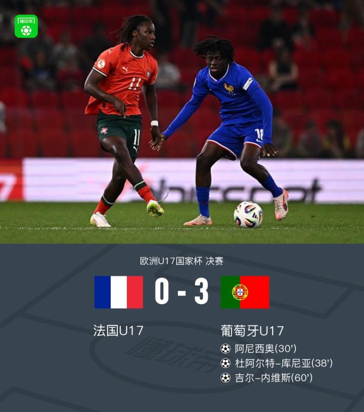 欧青U17葡萄牙3-0法国夺冠,阿尼西奥、库尼亚、内维斯破门