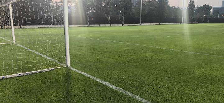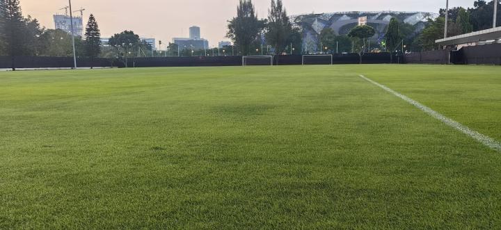 国足的训练场被安排在比赛场地:朋卡诺体育场北门外的一处场地,仅隔一条马路。由于该场地紧邻马路边,处于车流、人流量较大的地区,雅加达许多市民又恰好习惯在此时在周边道路上锻炼,隔壁场地又在进行雅加达当地的一些青少年和业余赛事,因此人声、车声交杂,训练环境并不是很安静。但训练场周边拉上了幕布进行围挡,保证了一定的封闭性。而场地经过养护,加上当地有利的气候,其草坪条件不错,而且并不是东南亚常见的大叶草。
