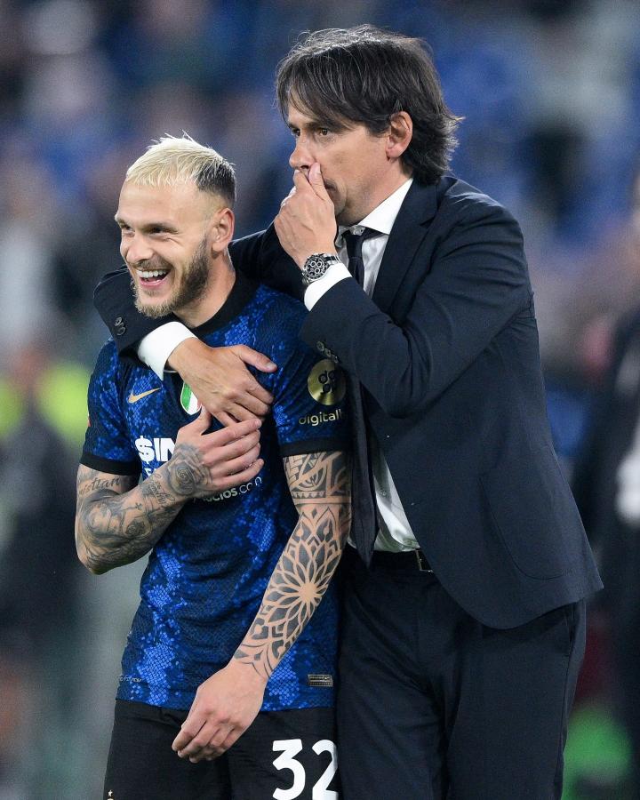 在国际米兰官方确认主帅西蒙尼-因扎吉离任后,迪马尔科在社交媒体发文告别恩师。