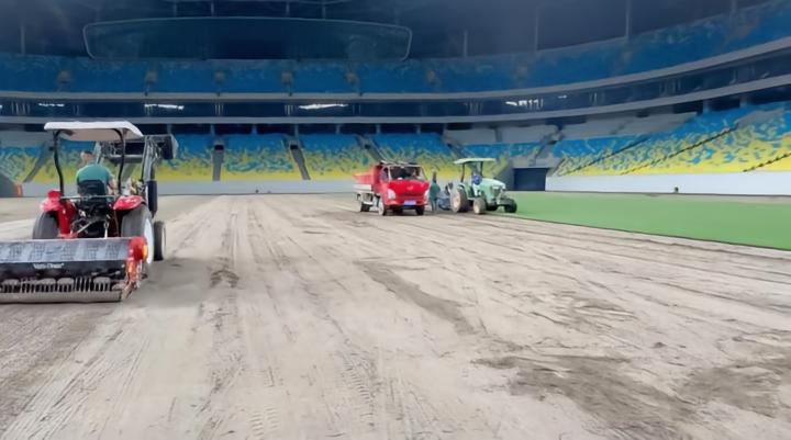 据介绍,在5月底的演唱会结束后,场地方就开始对冬季草的草皮进行铲除,铲草后,又对场地的土壤进行了打孔,增强透气性。