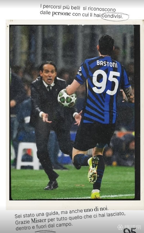 北京时间6月3日,国米官方发布公告,与小因扎吉经过会谈后达成协议,双方正式分道扬镳。公告发布后,国米球员巴斯托尼在社交媒体发文致敬了小因扎吉。