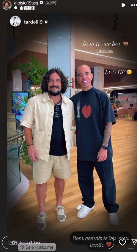 洛国富在社交媒体上晒出了自己与塔尔德利重逢的合影,并配文:“很高兴再见到你,好兄弟”。