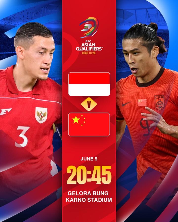 北京时间6月5日21:45,国足将在客场对阵印度尼西亚队,赛前,亚足联官方发布海报。