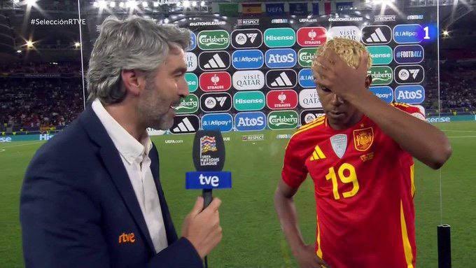 帮助西班牙以5-4击败法国晋级欧国联决赛后,当选全场最佳的亚马尔接受了Teledeporte的采访。