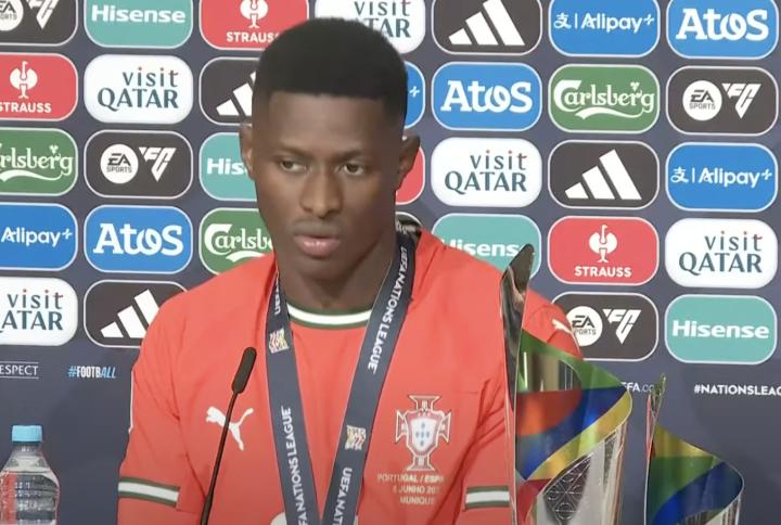 北京时间6月9日,欧国联A级联赛决赛,葡萄牙战胜西班牙,夺得冠军。赛后,葡萄牙球员努诺-门德斯出席了发布会。