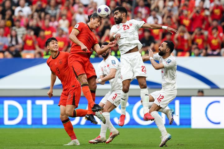 上半场比赛,中国队前锋张玉宁完成6次争顶并且成功3次,两项数据均为场上球员最高的,同时他也送出了2次关键传球,也是半场比赛最高。