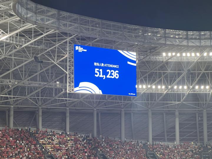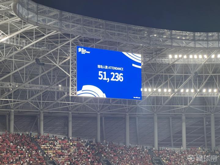 北京时间6月10日,国足与巴林的比赛正在进行。根据懂球帝前方记者@徐尔摩斯 消息,本场比赛的现场上座人数达到了51236人。