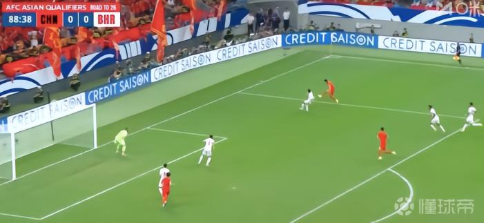 紧接着,巴林门将开出门球,黄政宇中场直接抢到一点,并且头球发动进攻,韩鹏飞带球突破到对方腹地,埃克回防形成包夹,球落到王子铭脚下,王子铭边路下底,埃克换位防守,王子铭传中球打在埃克手臂上,这时候时间是88分38秒。