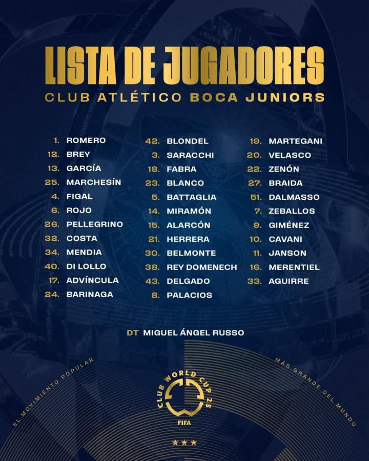 北京时间6月11日,阿根廷豪门俱乐部博卡青年公布了他们参加即将举行的世俱杯的大名单,其中老将卡瓦尼、罗霍、埃雷拉领衔。