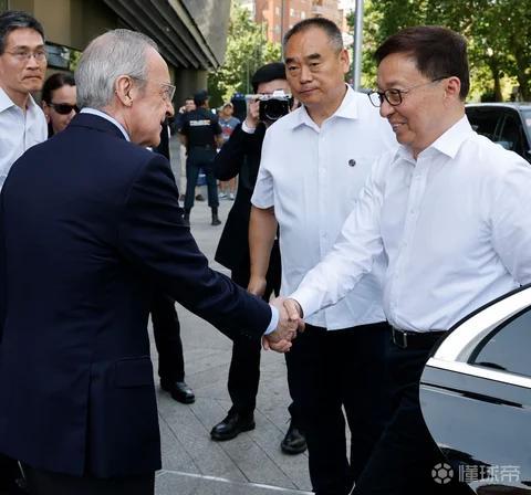 西班牙当地时间6月11日,据皇马官方报道,皇马俱乐部主席弗洛伦蒂诺在伯纳乌球场接待了中华人民共和国副主席韩正。