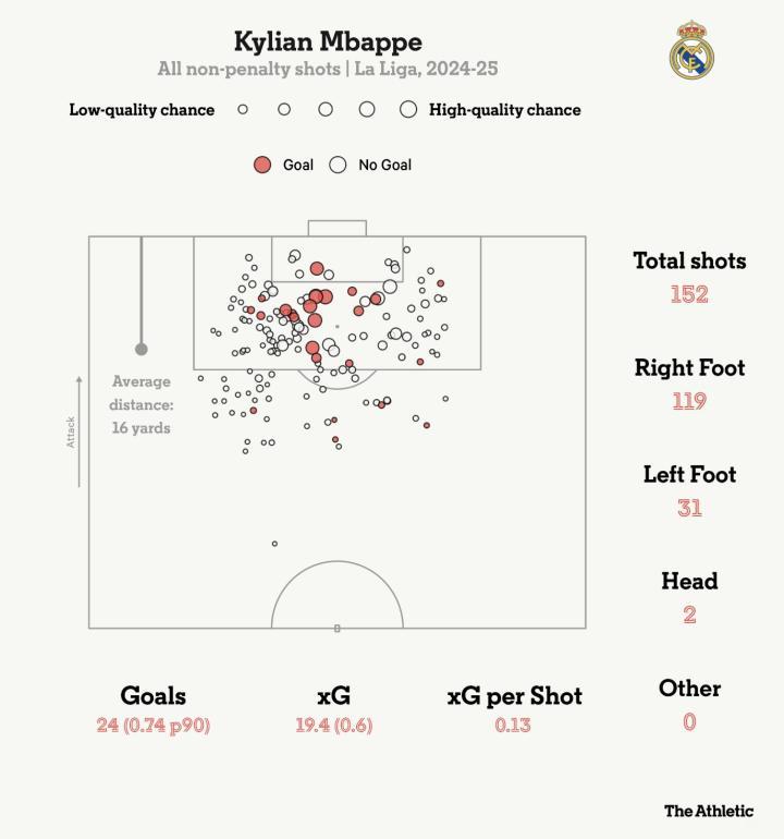 还有2024年12月对阵毕尔巴鄂竞技时罚丢点球,那一刻似乎成为姆巴佩改变的转折点——彼时他出场20场仅打入10球,远低于他一贯的高标准。