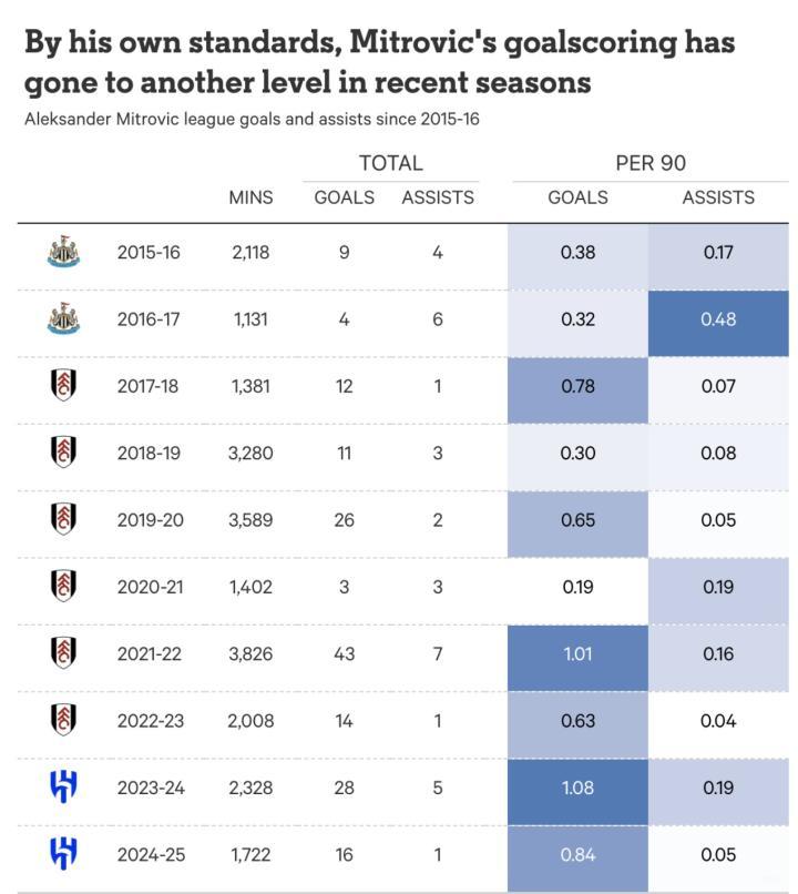 与同样拒绝欧洲豪门邀请的塞尔维亚同胞米林科维奇-萨维奇并肩作战,米特罗维奇在沙特表现出色,但他的天赋本可以继续留在欧洲顶级联赛。