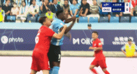 第4分钟,马莱莱挣顶被廖均健顶到后脑,裁判吹停比赛