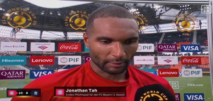 北京时间6月16日,拜仁在2025年世俱杯小组赛首轮中10-0大胜奥克兰城,赛后,拜仁球员约纳坦-塔接受了采访。