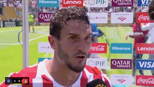 世俱杯首战以0-4惨败于巴黎后,马竞队长科克接受了媒体采访,他直言“红牌杀死了我们”。