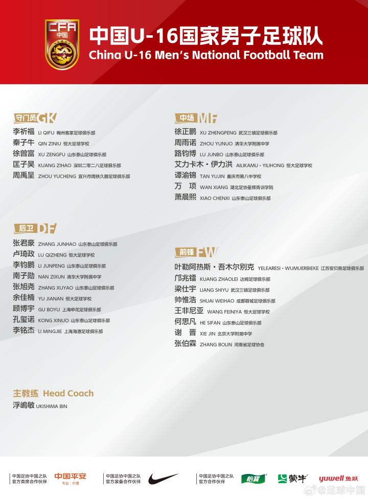 北京时间6月16日,中国足协官方公布了U16国少备战7月沈阳和平杯的集训名单,其中邝兆镭、谢晋、万项在列。