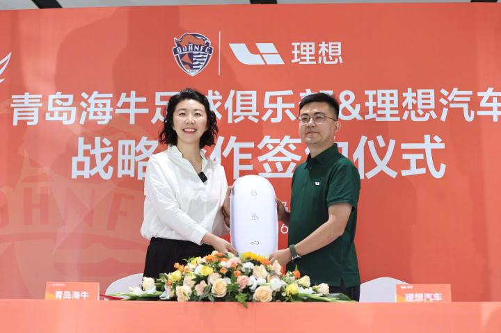 6月16日,青岛海牛足球俱乐部与理想汽车正式签约,成为俱乐部官方战略合作伙伴。理想汽车青岛站区负责人聂茂林、青岛海牛足球俱乐部副总经理冯文静、球员宋龙、席尔瓦出席签约仪式。