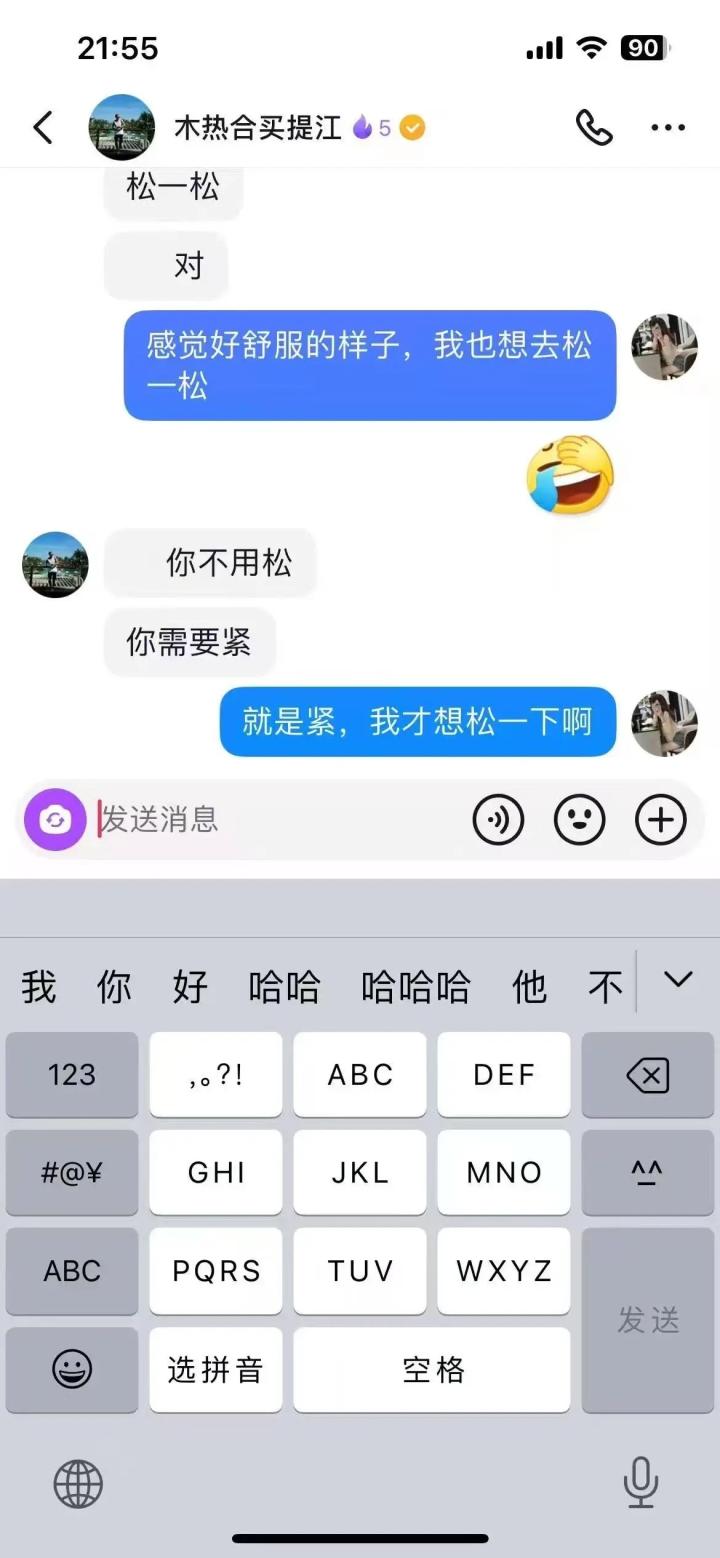 其中一段记录里,女球迷说:感觉好舒服的样子,我也想去松一松。买提江说:你不用松,你需要紧。女球迷则回复:就是紧,我才想松一下啊。