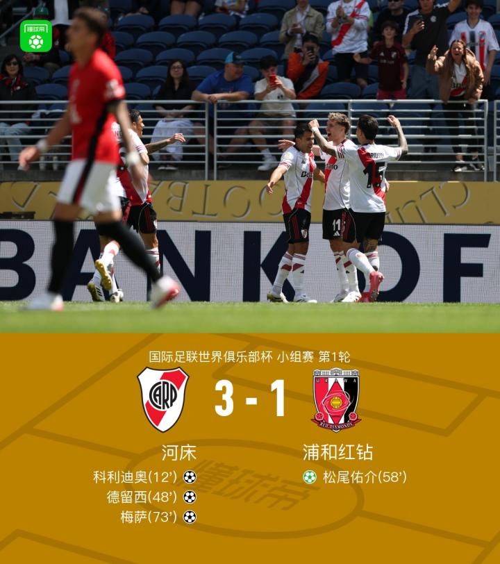 河床3-1浦和红钻,德留西、梅萨破门,阿库尼亚助攻双响+送点