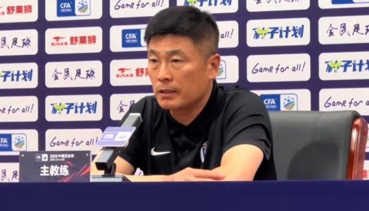 北京时间6月20日,在足协杯1/8决赛,大连英博主场对阵北京国安的赛前,英博主帅李国旭和队员晋鹏翔出席了新闻发布会。