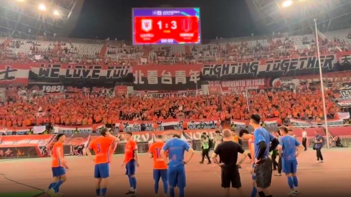 北京时间6月20日晚,足协杯第四轮,山东泰山1-3不敌成都蓉城被淘汰出局。赛后根据望岳记者前方视频显示,泰山赛后仅15名球员谢场,全场球迷高喊崔康熙下课。