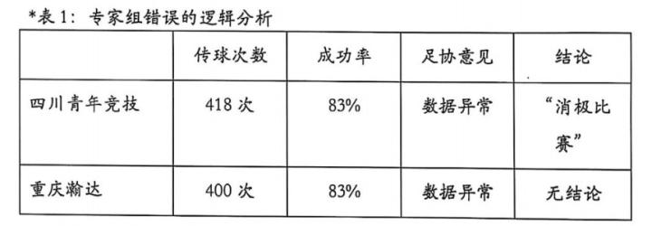 俱乐部的解释 :专家组不认为传球次数多、成功率高是积极比赛的表现。难道传球次数少、失误多才能让足协满意?至于射门次数少,则是由于多名主力因伤病、停赛无法首发所造成的,是上场球员正常实力的体现。足协利用一场比赛的射门指标的数据下降即草率地认定是消极比赛的分析,是严重违背足球规律的,那么请问,以后各队单场射门数据下降 20% 的,是否均认定为消极比赛?