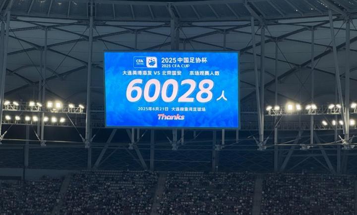 大连英博1-1北京国安(点球5-6):60028人(足协杯历史最高)