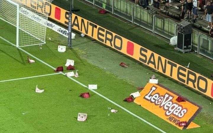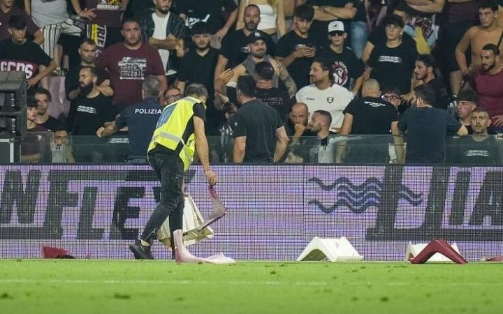 当比赛进行到第70分钟的时候,萨勒尼塔纳球迷再也忍不下去了,他们先是向球场内投掷点燃的焰火,之后干脆还把看台上的座椅拆下来扔进场内,现场甚至还出动了特警来维持秩序。