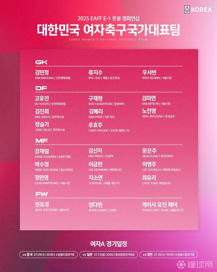 北京时间6月23日晚,韩国足协公布了出征东亚杯的女足大名单。金蕙利领衔,多位留洋球员在列,首战中国女足