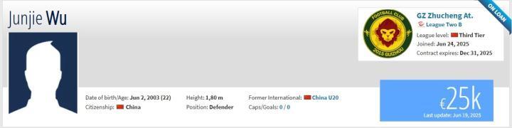 北京时间6月24日,根据德国转会市场网站更新的信息,长春亚泰球员吴俊杰租借加盟中乙贵州筑城竞技。