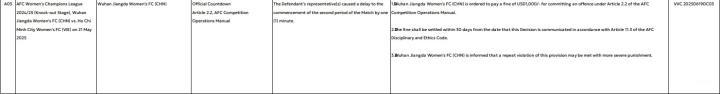 3. 武汉江大女子足球俱乐部(中国)被告知,若再次违反本条款,可能面临更严厉的处罚。