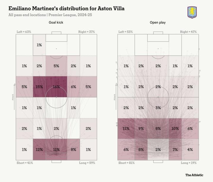 马丁内斯对体系的要求较低,便能保持高水平发挥。他是一位更传统的门将:在禁区内指挥若定,决策一致,持球时务实。这位32岁的门将不会在禁区边缘玩克鲁伊夫转身,也不会尝试用一记低平、精准的传球穿透防线找到中场中路。