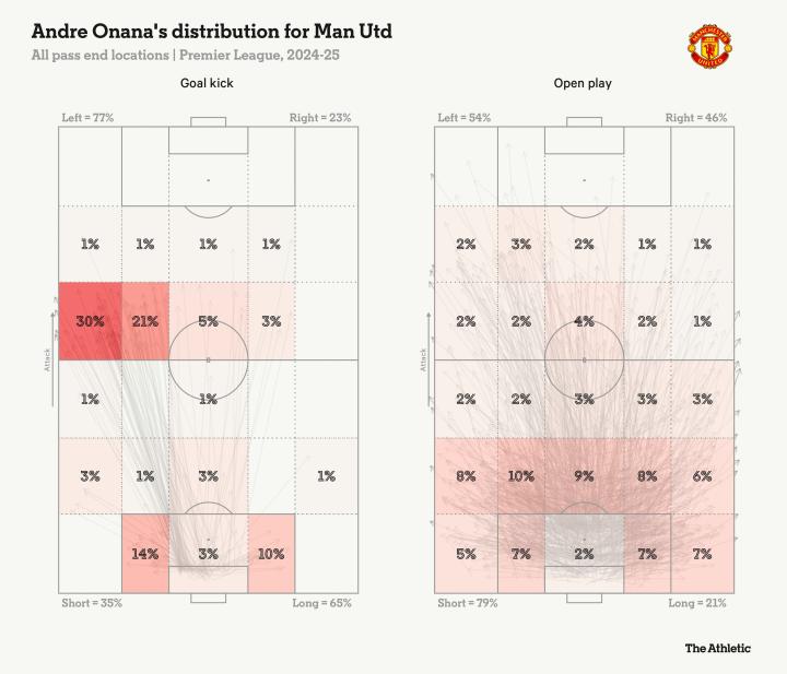 奥纳纳则更多长传向左路,希望能将球送到曼联进攻更具威胁的一侧。