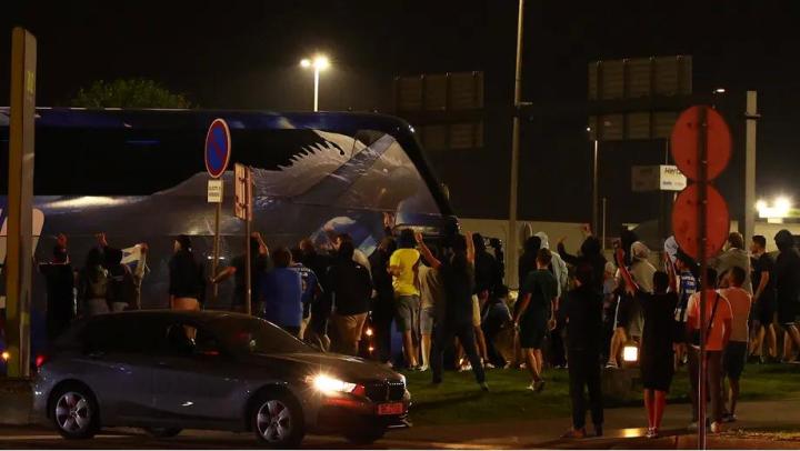 球队在抵达卡尔内罗机场后,没有从机场常规的到达口离开,而是从VIP通道离开,这是一个单独且禁止公众进入的区域。