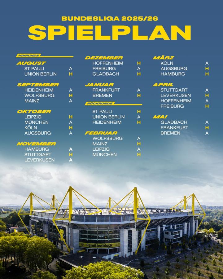 北京时间6月27日,多特蒙德官方公布了新赛季的赛程。多特蒙德揭幕战客战圣保利,第7轮将迎来德国国家德比,第12轮则要客战勒沃库森。