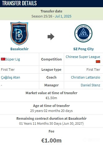 德转显示,深圳新鹏城从RAMS巴萨克赛尔买断以色列中场卡尔采夫,买断费100万欧。