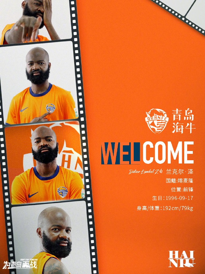 经协商一致,喀麦隆前锋兰克尔-泽(Didier Lamkel Ze)正式加盟青岛海牛足球俱乐部,他将身披60号球衣为球队出战赛季接下来的比赛,欢迎他的到来。