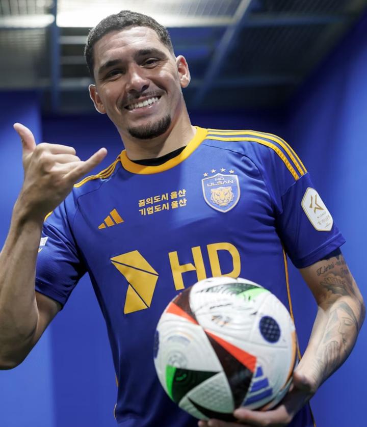 1999年出生的卡列洛身高1米86,曾经征战过巴西、葡萄牙和韩国联赛,2023年7月被租借到K联赛的江原FC后,就一直在韩国踢球,并且在去年7月转会到蔚山HD,所以亚戈-卡列洛对亚洲足球比较了解。