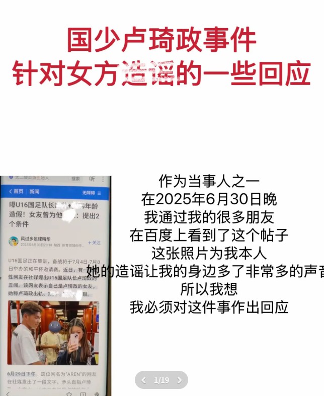 北京时间7月1日,疑似卢琦政当事人针对国少卢琦政事件女方自己的造谣作出回应。