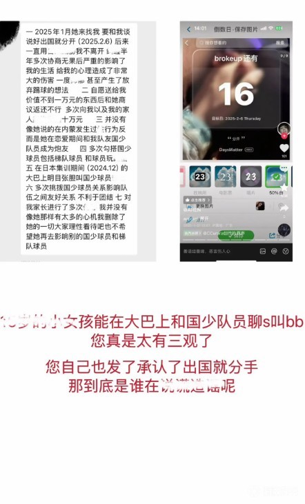 疑似U16国少队长卢琦政女友:球员出轨、裸聊,年龄存在问题