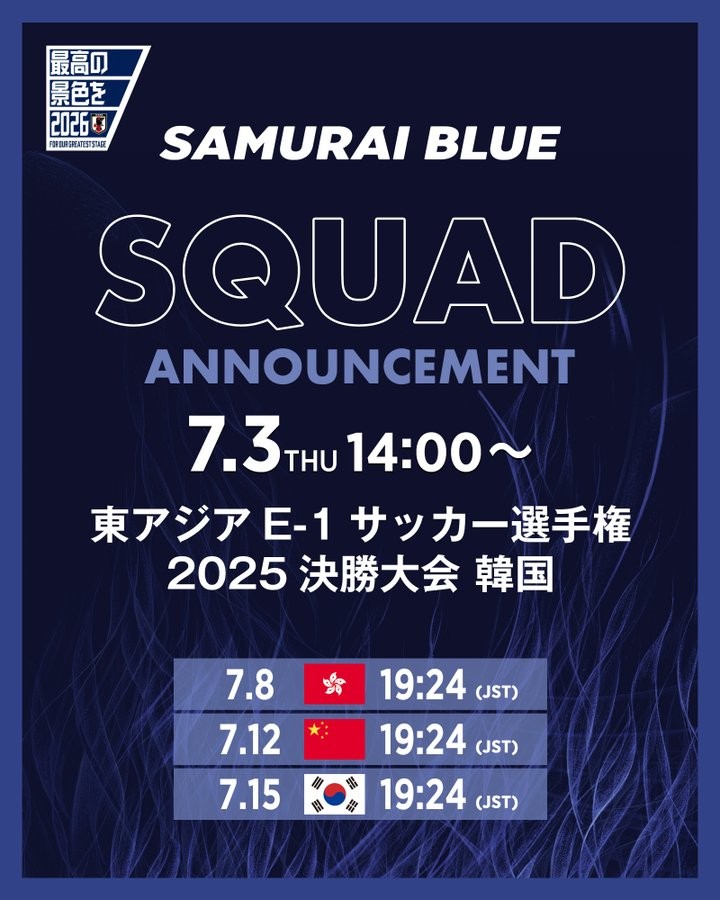 北京时间7月1日,日本足协官方宣布,将于北京时间7月3日下午1时公布参加东亚杯的大名单。