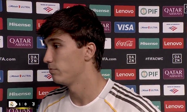 世俱杯1/8决赛,皇马凭借贡萨洛的制胜球1-0小胜尤文,赛后,这位进球功臣接受了DAZN的采访。