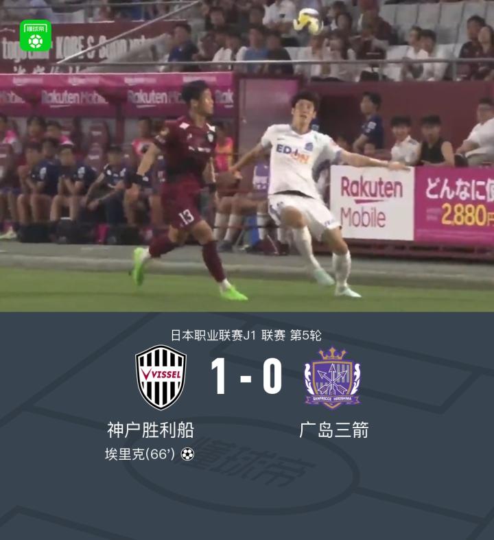 神户胜利船1-0广岛三箭,埃里克制胜