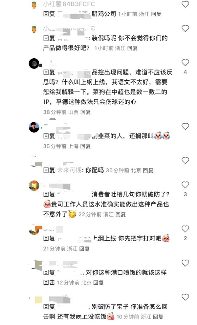 北京时间7月2日,有球迷在浙江FC官方商店账号下吐槽孚德商品的品控问题,此前一批浙江队吉祥物“gogoal”的质量出现了一定问题,孚德也承诺对该批问题商品予以退货处理。但是有网友发现孚德足球项目部经理在评论区回击浙江队球迷,孚德官方随后也发布了致歉声明。