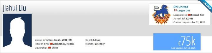 北京时间7月3日,德转更新,河南队后卫刘家辉租借加盟定南赣联。