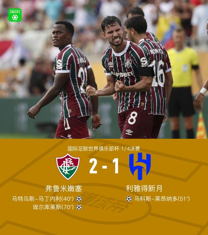 【弗鲁米嫩塞2-1新月晋级4强,马丁内利破门,埃尔库莱斯建功】