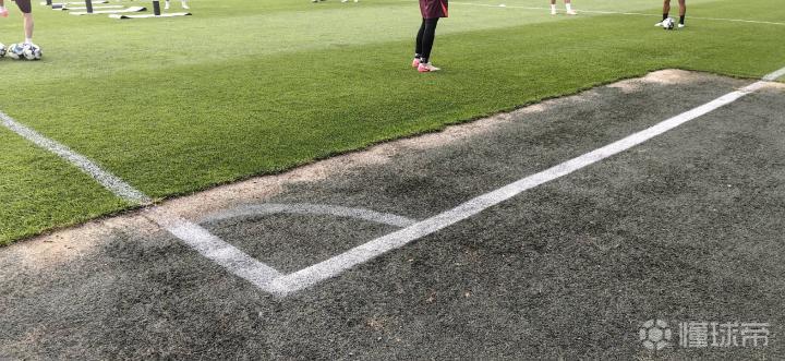 虽说训练场的草皮条件不错,但比较遗憾的是,这块场地的一角有“残缺”,一个角球区附近的位置没有草皮覆盖,这是比较少见的情况。